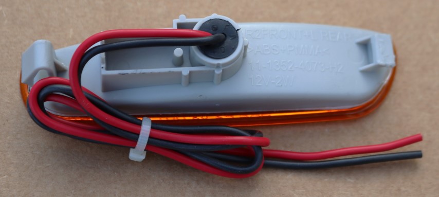 This replacement side marker light (with an orange lens) mounts on the front bumper cover, near to both the corner light & wheel. Comes complete with a bulb and wires.