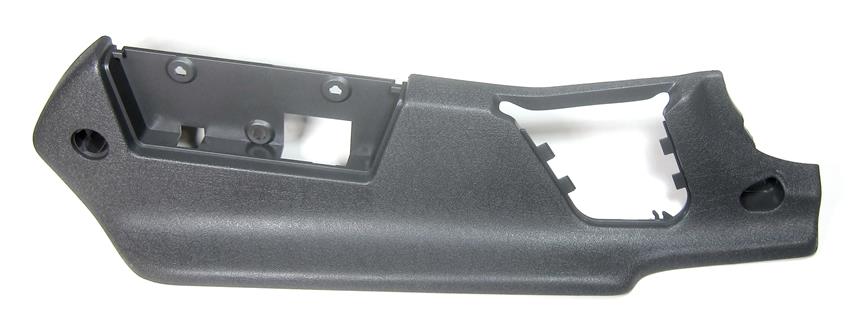 Factory replacement grey trim panel for the side of the driver's seat. This plastic piece houses the electric controller switches.